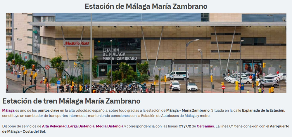 Estación: Málaga María Zambrano (conecta Cercanías, AVE y Larga Distancia).